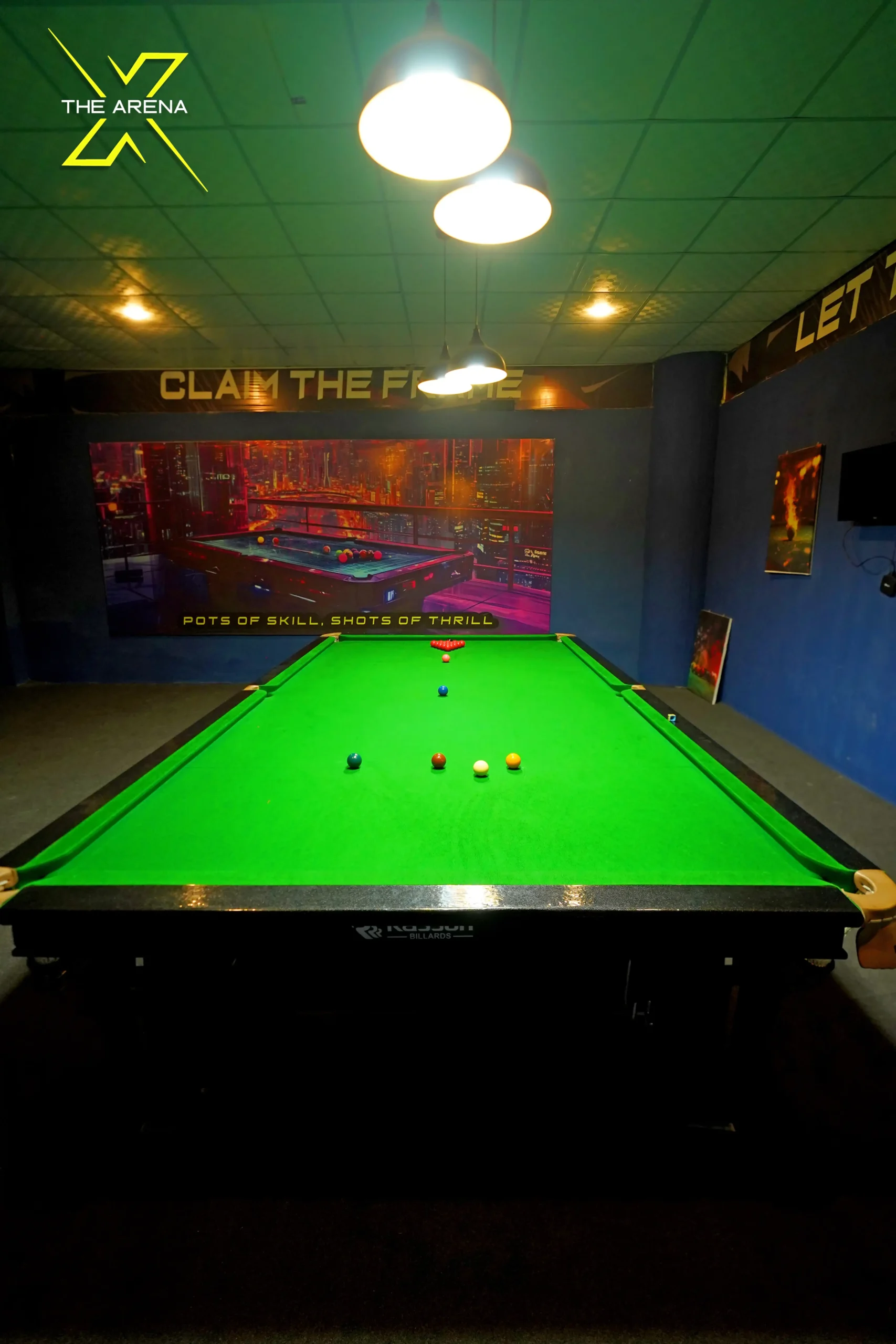 Enjoy a luxurious snooker experience with our professional-grade snooker table, set in a stylish, well-lit room for both casual play and competitive games.